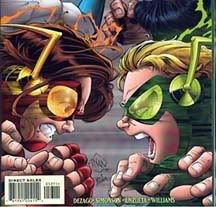During his time as Impulse, Bart co-founded the sidekick team known as Young Justice with fellow teen heroes Robin (Tim Drake) and Superboy (Kon-El). The team grew from there. Bart had numerous adventures with them, including trips to places like Gotham City during the No-Man's-Land and even Apokalips, home of the overlord Darkseid. After moving to Denver with Jay Garrick, Bart was presented with an invitation to the Teen Titans. Wally disapproved of his joining, because of his own status as a former Titan and because of his general disapproval of Bart, but Jay encouraged it. So...Bart went off to join the new Teen Titans - consisting of members Cyborg, Starfire, Beast Boy, Robin, Superboy, Wonder Girl and later, Speedy and Raven.